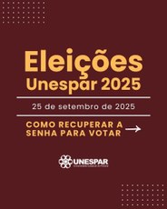 🛜 A votação será online, por meio do sistema de votação online, disponibilizado pela Universidade Estadual de Ponta Grossa (UEPG). Para verificar se está apto a participar da eleição, é necessário acessar o site homologação.unespar.edu.br, com usuário (RA para estudantes e nome.sobrenome para servidores) e senha. Caso não saiba qual a senha, siga o passo a passo para recuperá-la.