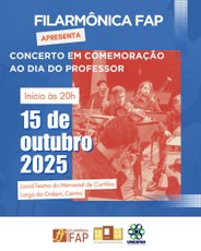 A Filarmônica FAP, grupo artístico do Campus de Curitiba II/FAP, da Universidade Estadual do Paraná (Unespar), realizará um concerto especial no dia 15 de outubro, às 20h, no Teatro do Memorial de Curitiba, em comemoração ao Dia do Professor.
