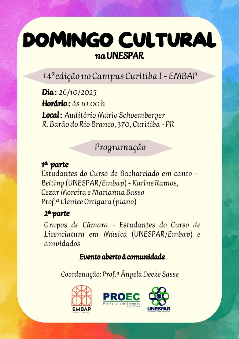 14ª Edição do Domingo Cultural na UNESPAR - Campus Curitiba I - EMBAP